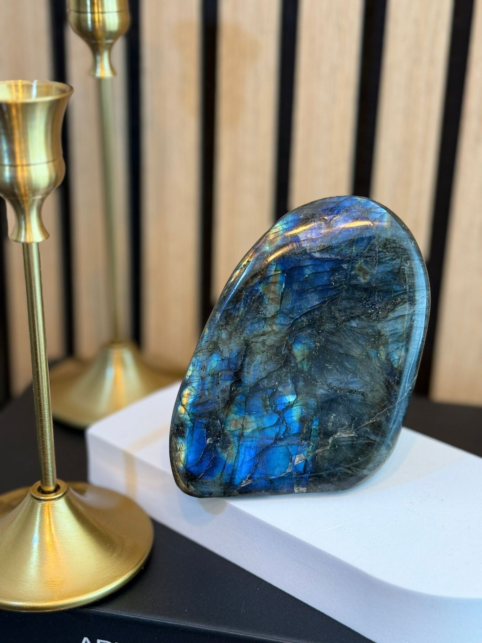 Labradoriet Sculptuur blauw/geel flash